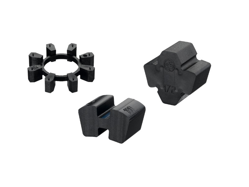 Эластичные элементы, сегменты и кулачки для упругих муфт производим из полиуретана. Полиуретан обладает наилучшими демпфирующими и гасящими виброудар свойствами, что делает этот материал незаменимым при производстве упругих элементов. Широкий диапазон твердости полиуретана, позволяет производить вставки для муфт с твердостью от 40 до 90ШорА, в зависимости от того требуется более плавно гасить нагрузку или нужно обеспечить высокую износостойкость и повышенный ресурс работы упругого элемента.